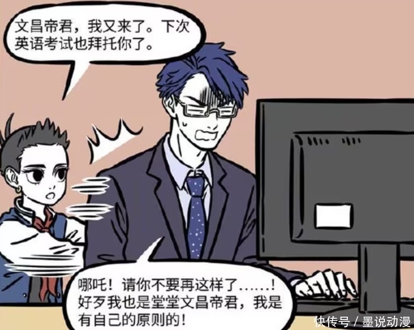 不仅是人类学子会求助文昌帝君,就是哪吒也经常来求他。那么哪吒主要求什么?他是因为英语考试,想要及格所以来文昌帝君身边求助。文昌帝君很生气,但也很无奈。哪吒每次都这样,文昌帝君也是有原则的人,不会再被他影响。