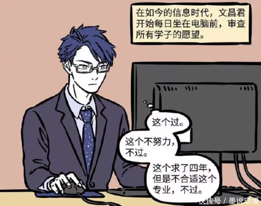 随着时代发展,文昌帝君开始每日都要坐在电脑前,审查着学子们的愿望。文昌帝君会好好看他们的愿望,哪些可以过,哪些不能过。如果不够努力,文昌帝君就会不过。还有个求了4年,但是不适合这个专业,所以也不会给他过。